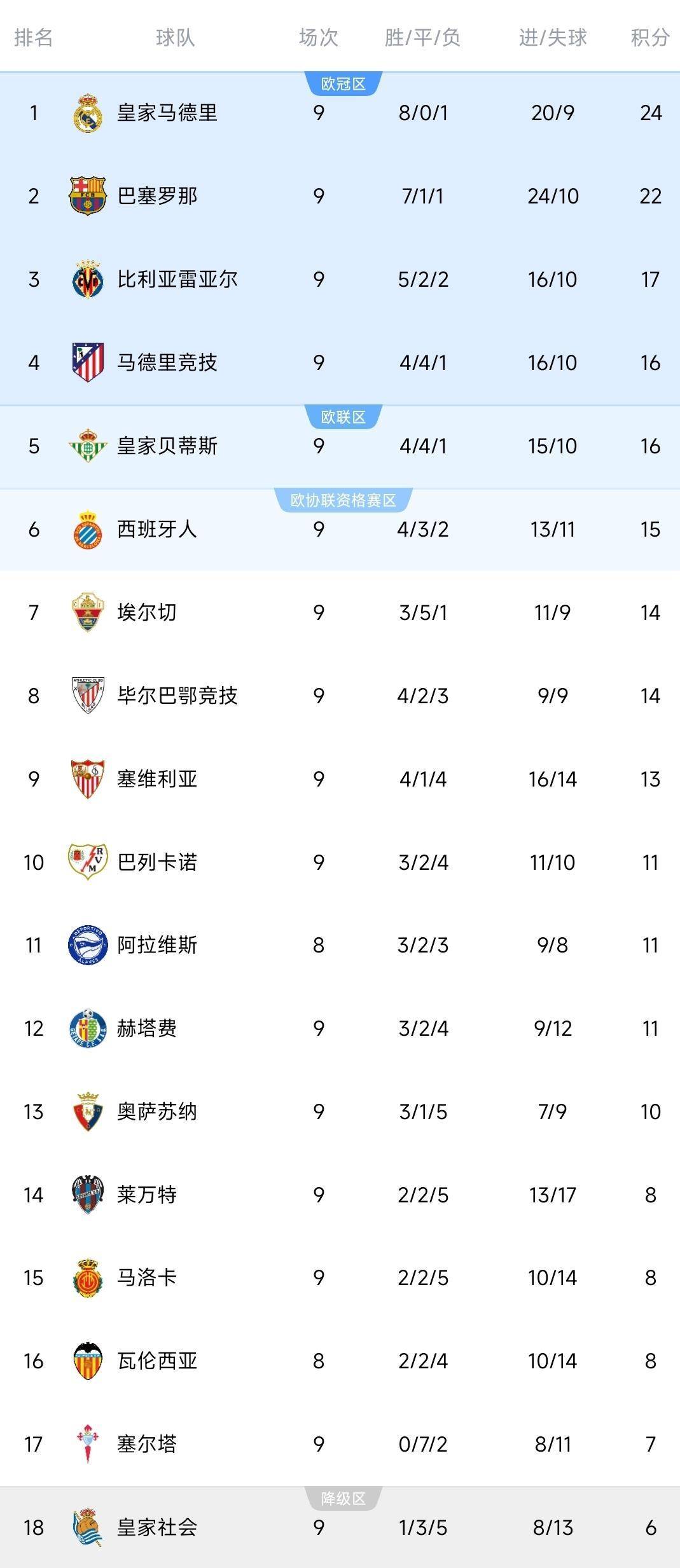 西甲直播,西甲赛程,西甲积分榜,皇马vs巴萨直播,西甲比分预测/为中文用户提供2025赛季西甲联赛全方位资讯:免费高清中文直播入口、赛程表、积分榜更新、皇马与巴萨动态追踪、竞彩推荐与比分预测。在西甲第9轮的焦点战中,皇家马德里客场1-0艰难战胜赫塔费,凭借姆巴佩的制胜球和维尼修斯制造的两次红牌转折,重新登顶积分榜;与此同时,皇家社会在长达半场多一人的优势下仅1-1绝平塞尔塔,联赛9轮后仅积6分,深陷降级区,与皇马的强势反弹形成鲜明对比。