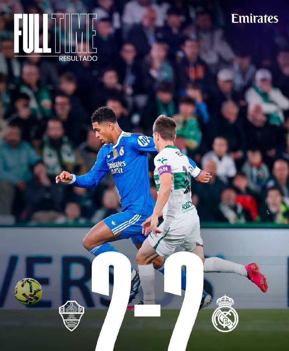 他们两次领先又被追平,反击打得有章法。 更令人惊讶的是,埃尔切本赛季三次与皇马交手全部战平,这显然不是偶然,而是球队实力和战术安排的体现。