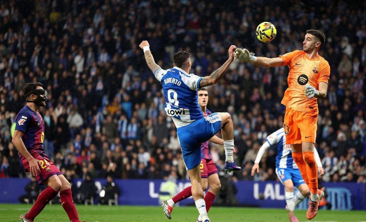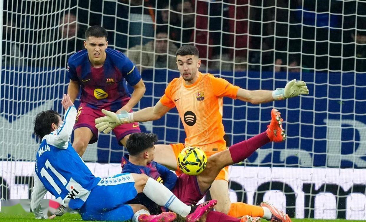 反而是西班牙人,一次次利用简洁的反击,直接刺向巴萨的心脏地带。 他们的前锋几次获得绝佳机会,其中一次单刀球和一次禁区内的近距离头球,都极具威胁。 但所有这些努力,都被巴萨门前的最后一关——霍安·加西亚,无情地拒绝了。 他出击果断,下地迅速,高接抵挡,仿佛在门前筑起了一堵墙。 面对老东家,加西亚没有丝毫手软,他的每一次成功扑救,都引来看台上主队球迷复杂的叹息。