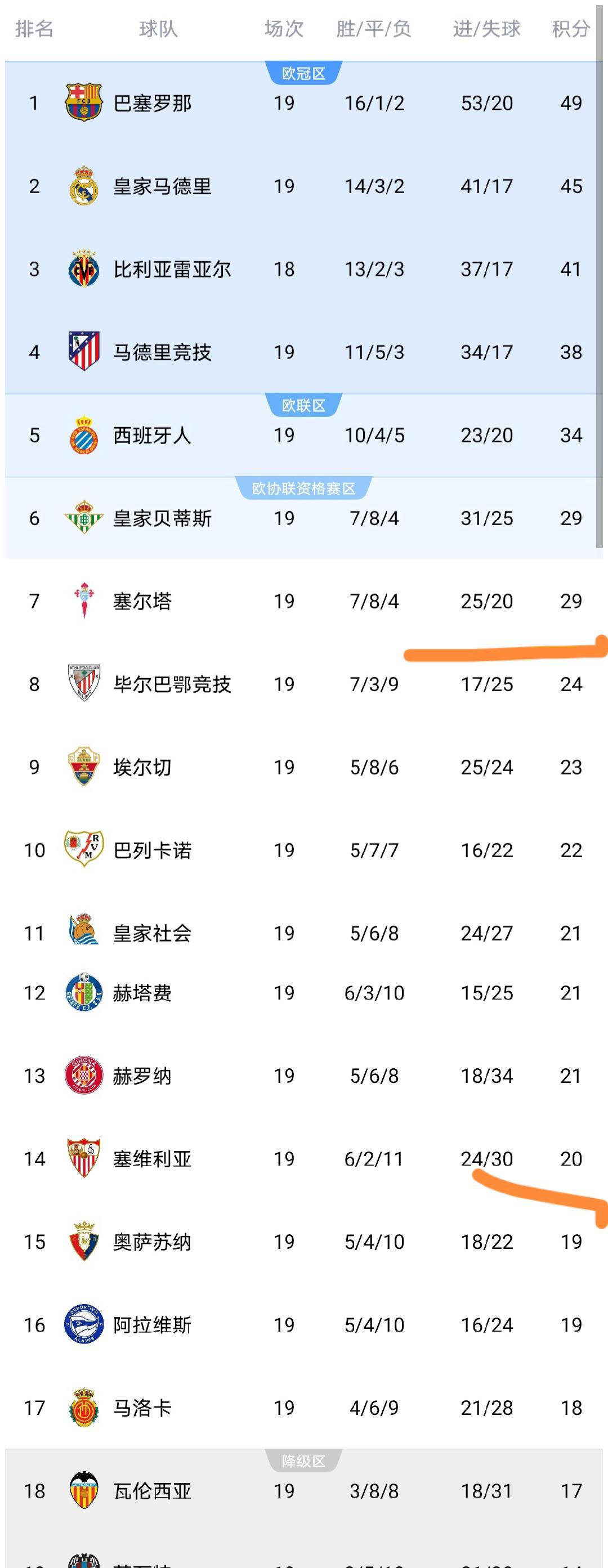 小编 西甲积分榜 2026-01-15