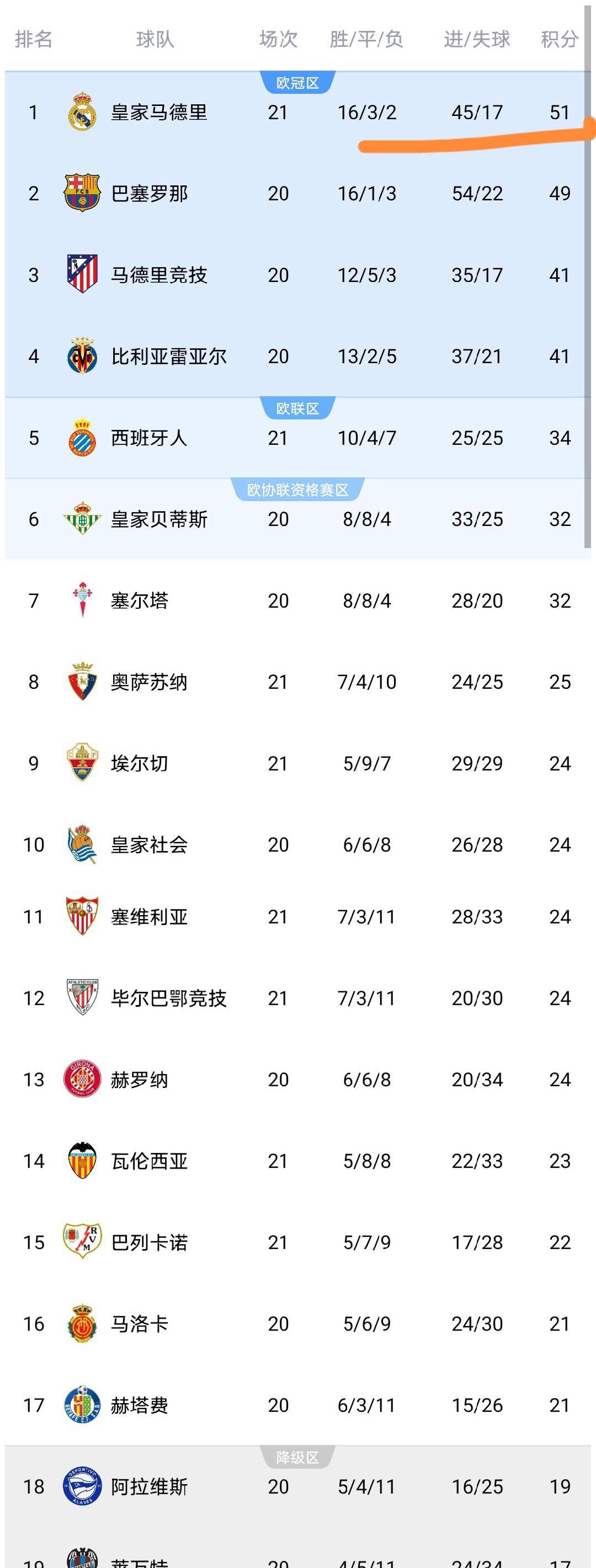 值得一提的是,皇马在客场对阵比利亚雷亚尔时,以2-0完胜对手,姆巴佩独中两元,帮助球队积分增加至51分,成功反超巴塞罗那跃居积分榜首位。而比利亚雷亚尔则以41分暂居第四,未能通过本轮赛事超越排名第三的马竞。