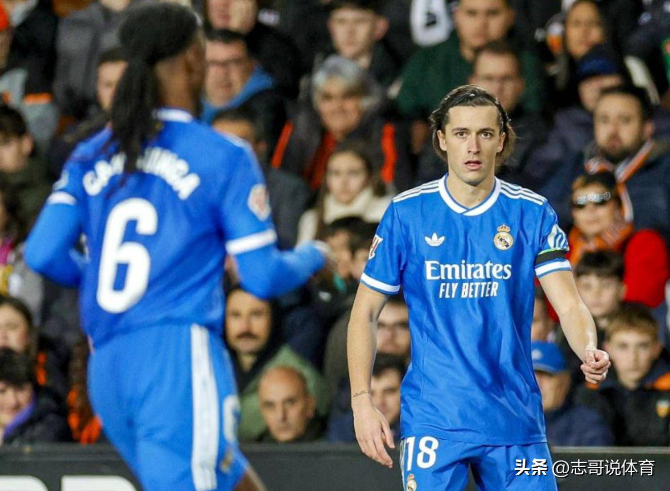 下半场刚上来,皇马的角球进攻直接开向了球门,不过也吹罚了皇马的进攻犯规,接着巴尔韦德的一脚远射又被没收,迟迟无法进球的皇马踢得有些着急了,瓦伦西亚队的密集防守相当顽固。