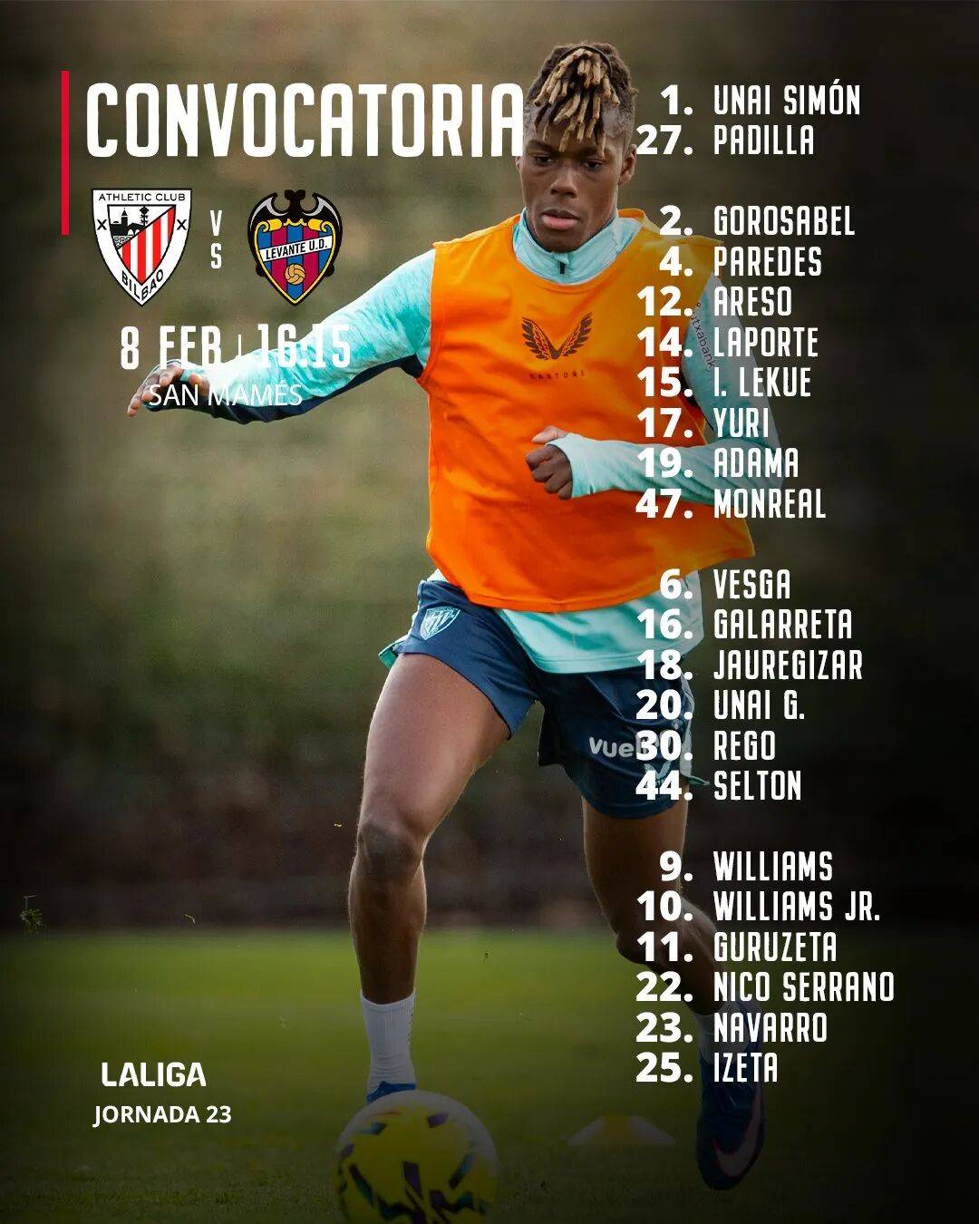毕尔巴鄂竞技在本周的西班牙国王杯中客场2-1绝杀巴伦西亚闯入半决赛,他们将和皇家社会争夺决赛权。主帅巴尔韦德在首发阵容中只保留了中场哈乌雷吉萨尔。上半场巴伦西亚前锋萨迪克自摆乌龙,但他利用毕尔巴鄂竞技替补门将潘迪利亚黄油手扳平比分。下半场哈乌雷吉萨尔主罚点球被迪米特里耶夫斯基扑出,不过伊纳基威廉姆斯还是在伤停补时打入绝杀球帮助球队获胜。毕尔巴鄂竞技本场缺少贝伦盖、维维安、桑塞特、贝尼亚特和桑纳迪,耶雷依旧处于禁赛中。