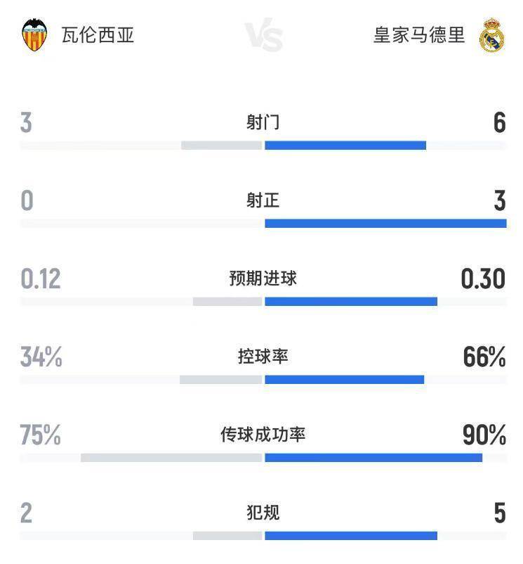 压力之下的皇马,来到了梅斯塔利亚球场。 对手瓦伦西亚虽然曾是西甲劲旅,但本赛季状态低迷,22轮过后只赢了5场,排在倒数第四,仅仅比降级区高1分。 按理说,这该是一场实力悬殊的较量。 但比赛进程却出乎意料。 皇马上半场控球率遥遥领先,射门6次,3次射正,而瓦伦西亚只有3次射门且0射正。 无论是姆巴佩的推射,还是连续的角球攻势,都被瓦伦西亚顽强的防线和门将,化解。 整个上半场,比分是尴尬的0-0。