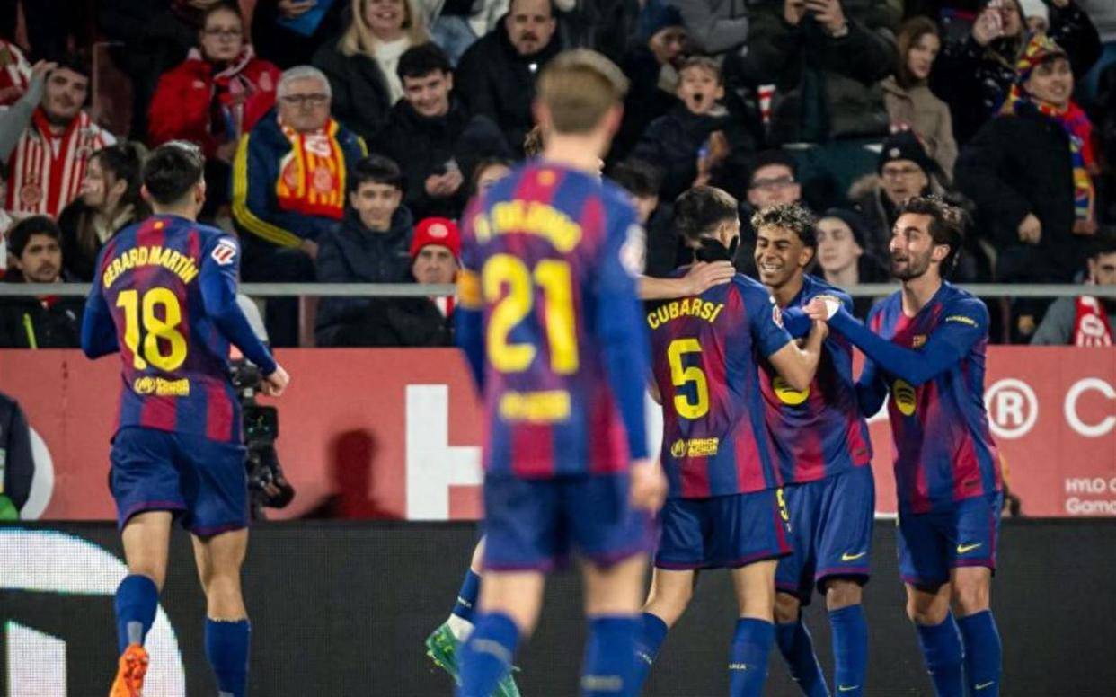 比赛在一种近乎窒息的氛围中开始。 巴萨刚刚在周中的国王杯半决赛被马竞4-0羞辱,他们急需一场胜利来止血,更因为稍早结束的比赛里,皇马已经4-1取胜,以2分的优势暂时登顶。 压力像一块巨石,压在每一个穿着红蓝球衣的人胸口。 反观赫罗纳,赛前仅领先降级区2分,阵容里伤兵满营,七名主力高挂免战牌。 没人对他们抱有期待,除了他们自己。